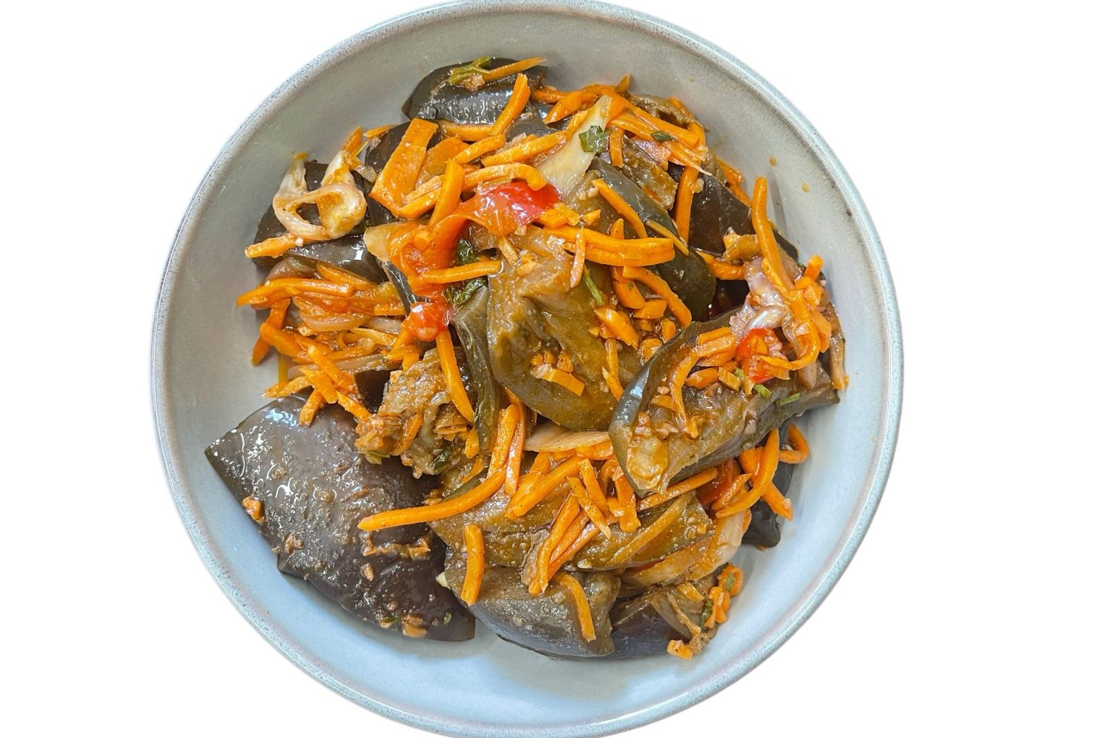 Состав: Баклажан, морковь, рапсовое масло, спиртовой уксус, имбирь, соль, сахар, кориандр, чеснок, красный чили, сладкая паприка, чёрный перец, консерванты: бензоат натрия, глутамат натрия.