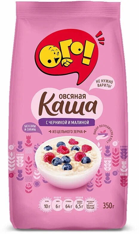 Каша овсяная с черникой и малиной 350г ОГО!