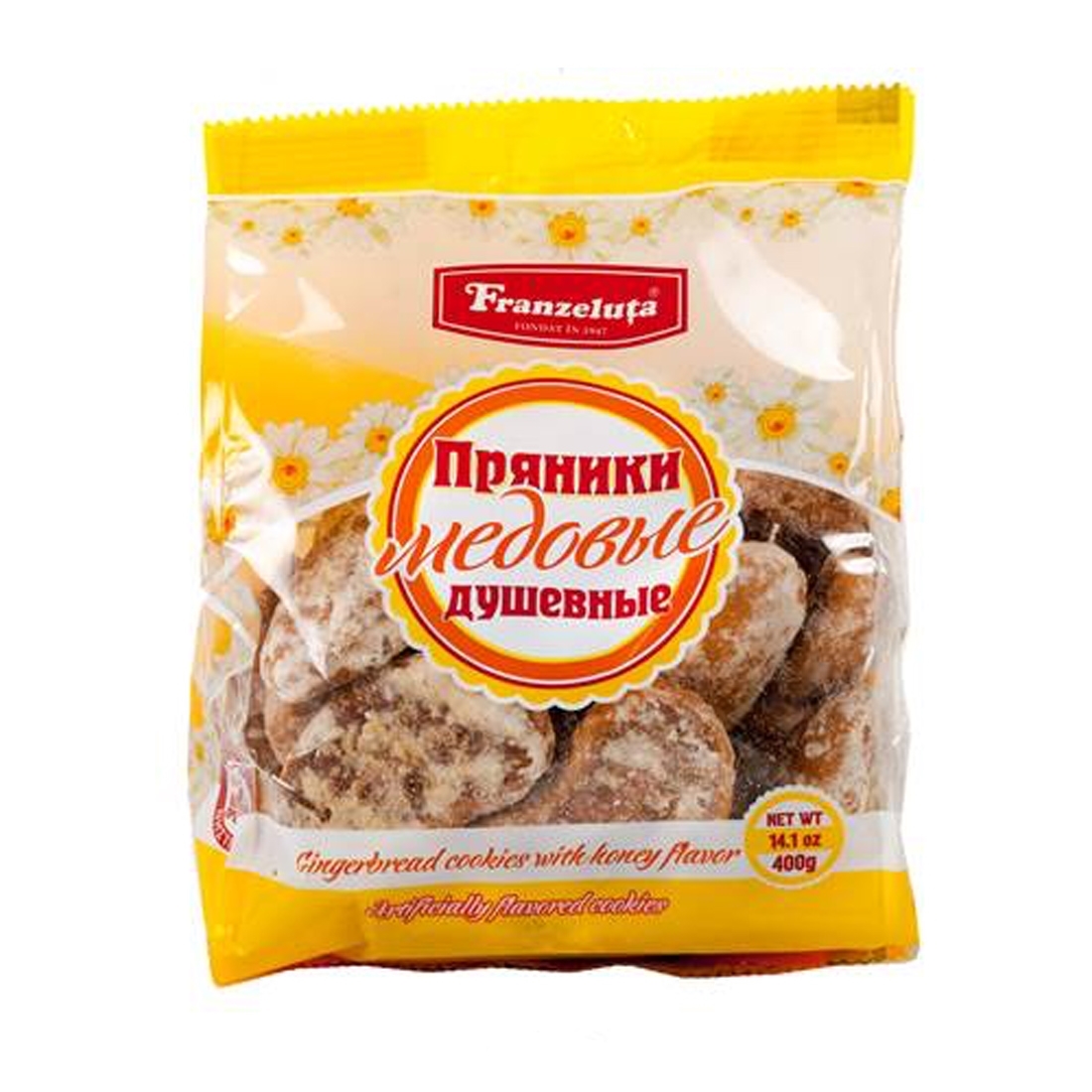 Složení: Pšeničná mouka, cukr, plně hydrogenovaný palmový olej, zvlhčovadlo: sorbitol (E420), kypřící látka: uhličitan amonný (E503), kypřící látka: hydrogenuhličitan sodný (E500), konzervant: sorban vápenatý (E203), medové aroma, okyselovač: kyselina citrónová (E330).