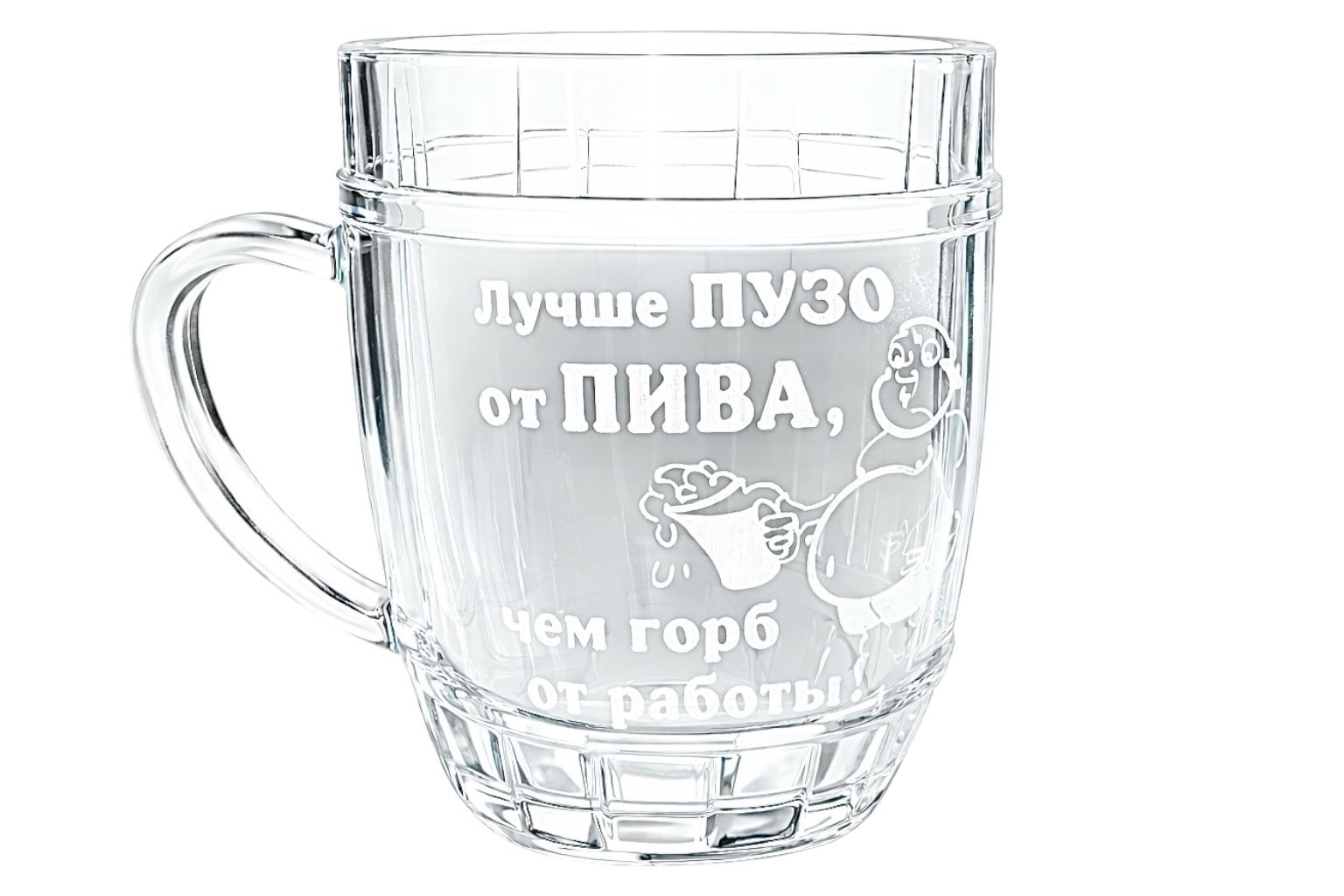 Пивная кружка объёмом 0,5 литра с оригинальной надписью «Лучше пузо от пива, чем горб от работы» предназначена для подачи пива и других напитков. Изготовлена из качественного стекла, обеспечивающего долговечность и удобство использования. Отлично подходит для домашнего использования, баров, ресторанов или в качестве подарка с юмористическим акцентом.