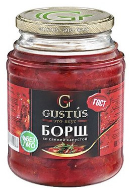 Борщ со свежей капустой от бренда Gustus в упаковке объемом 450 г — это традиционное русское блюдо, приготовленное из свежих овощей, таких как свекла, капуста, картофель и морковь, с добавлением томатной пасты и ароматных специй. Борщ обладает насыщенным вкусом и ярким красным цветом, который придает ему свекла.