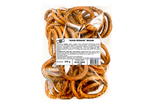 Složenípšeničná mouka, cukr, margarín "Extra" (rafinované deodorizované rostlinné tuky a oleje, včetně částečně ztužených a ochucených, regulátor kyselosti: kyselina citronová; potravinářská barviva), slunečnicový olej, voda, mák 2,8%, sůl, parm, kypřidlo: E503.