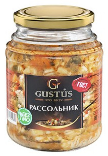 Рассольник от бренда Gustus в упаковке объемом 450 г — это традиционный русский суп, приготовленный на основе рассола и с добавлением разнообразных ингредиентов, таких как мясо, картофель, соленые огурцы и специи. Рассольник обладает насыщенным вкусом с характерной кислинкой от рассола и богатым ароматом.