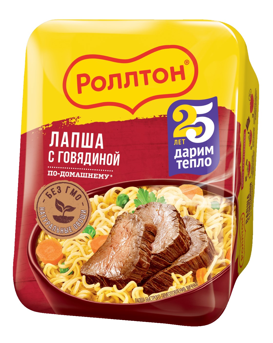 Независимо от того, насколько вы заняты, всегда есть время насладиться вкусным обедом или ужином с лапшой Rollton. Его удобно готовить прямо в упаковке. Аромат специй и натуральных овощей, чистый вкус бульона и нежная яичная лапша наполнят вас положительными эмоциями и помогут справиться с чувством голода, где бы вы ни находились.