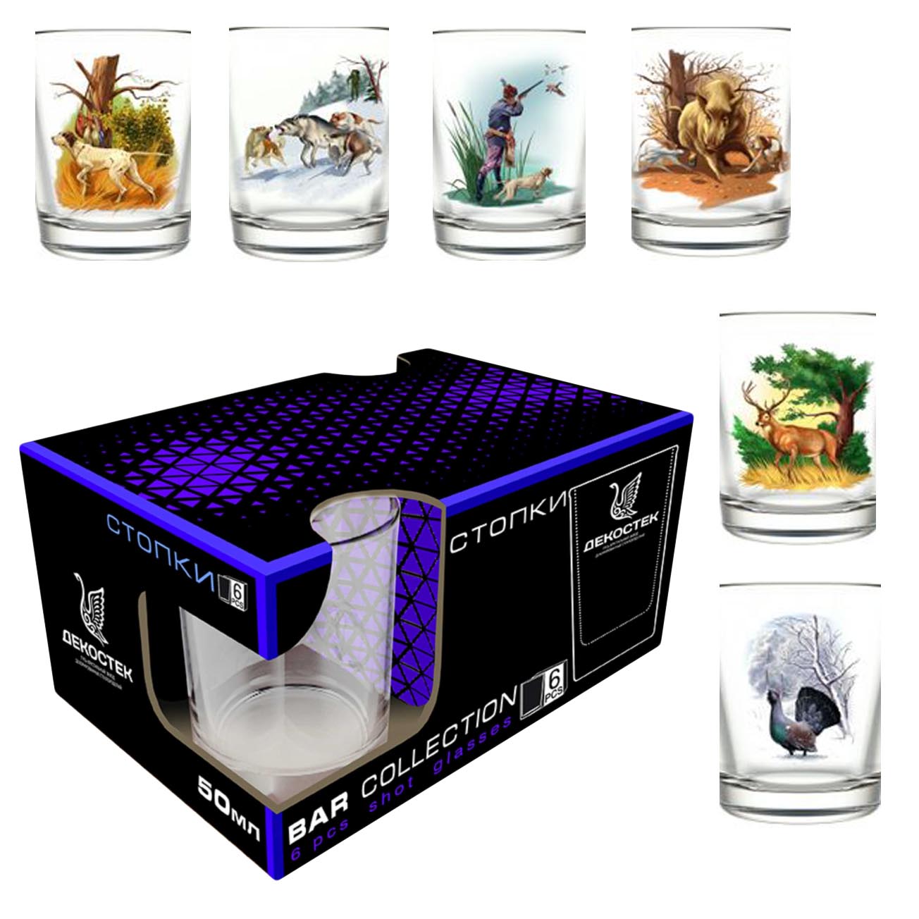 Набор из 6 стопок 50мл Животные