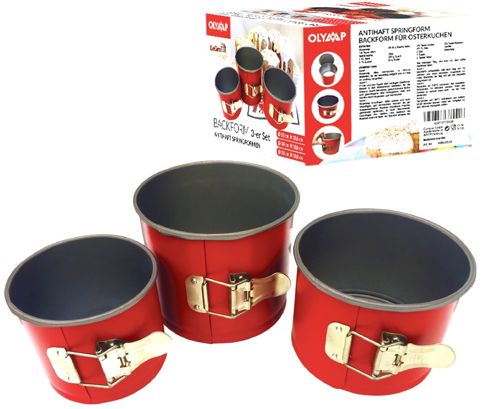 Набор из 3-х металлических круглых форм для пасхального кулича разного диаметра (12/14/16 см). Они позволяют быстро и удобно выпекать. Использование специального сплава позволяет форме быстро нагреваться и долго сохранять тепло. Прочные ручки позволяют легко открывать и закрывать формы. Это отличное дополнение к праздничному столу во время Пасхи.