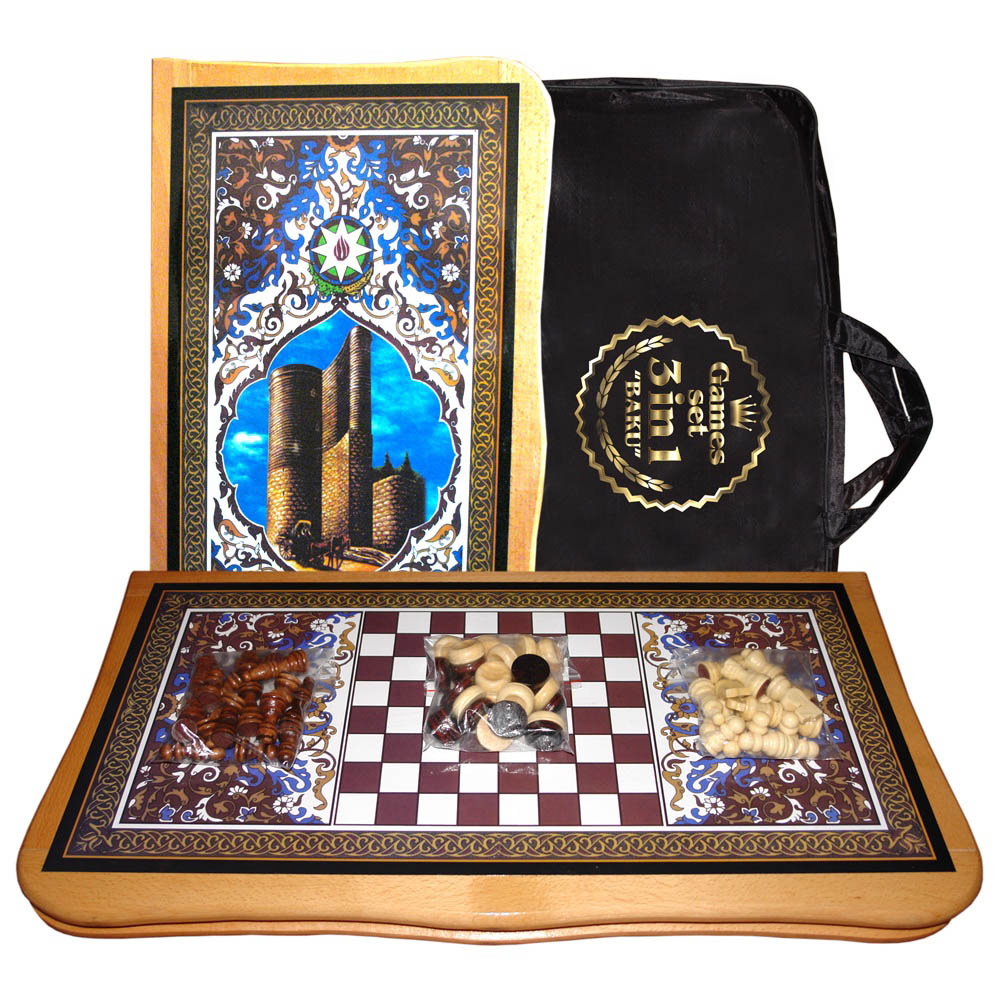 Шашки, нарды, шахматы 3 в 1 "Баку" 55х55см