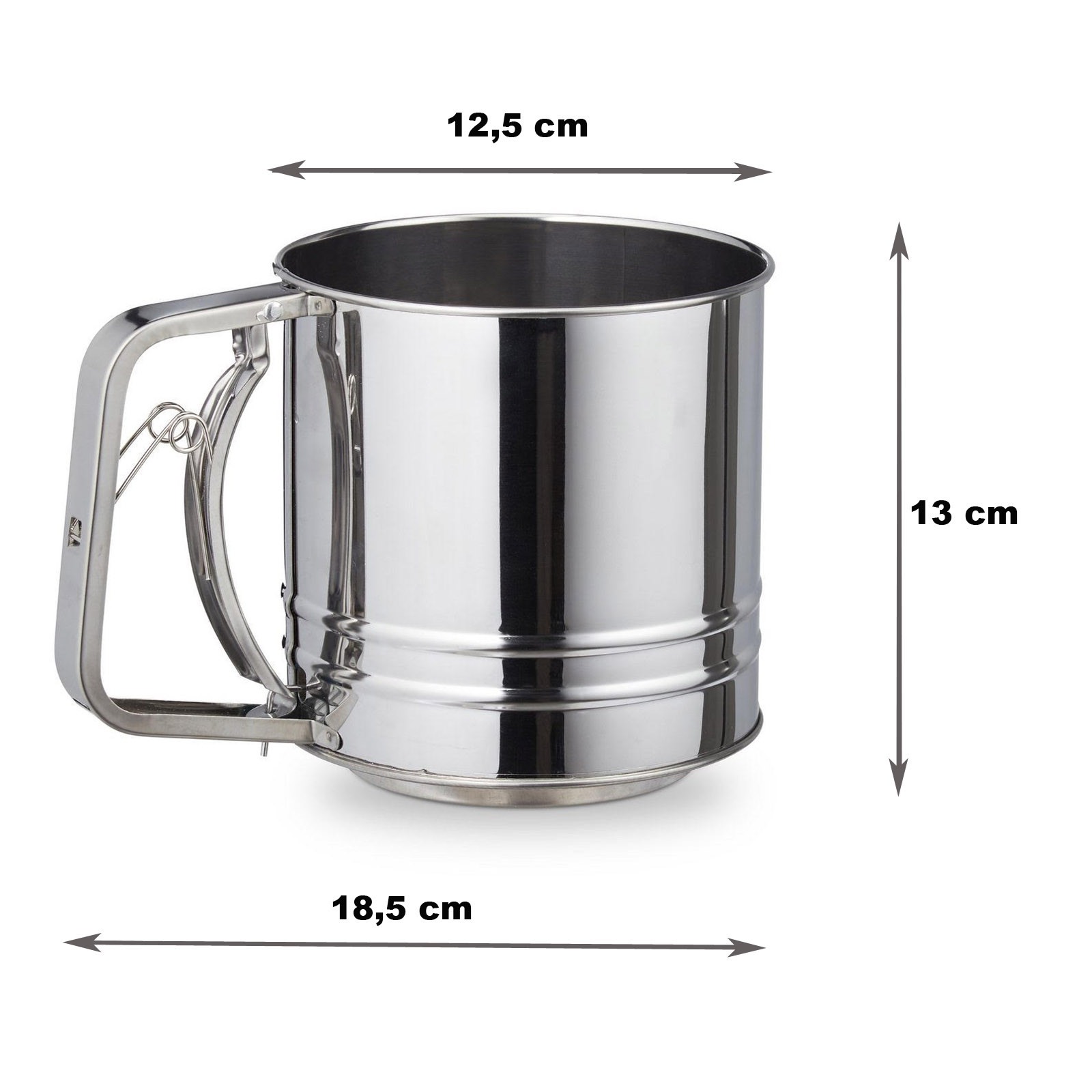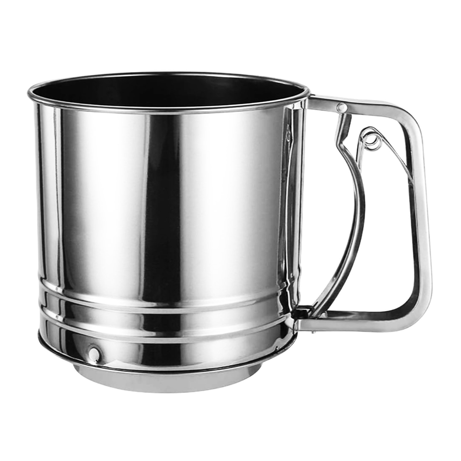 Удобное и практичное сито в виде кружки — незаменимый помощник на кухне для просеивания муки, сахарной пудры и других сыпучих продуктов. Благодаря механизму с пружиной и двойному дну мука просеивается равномерно и быстро, без комков.