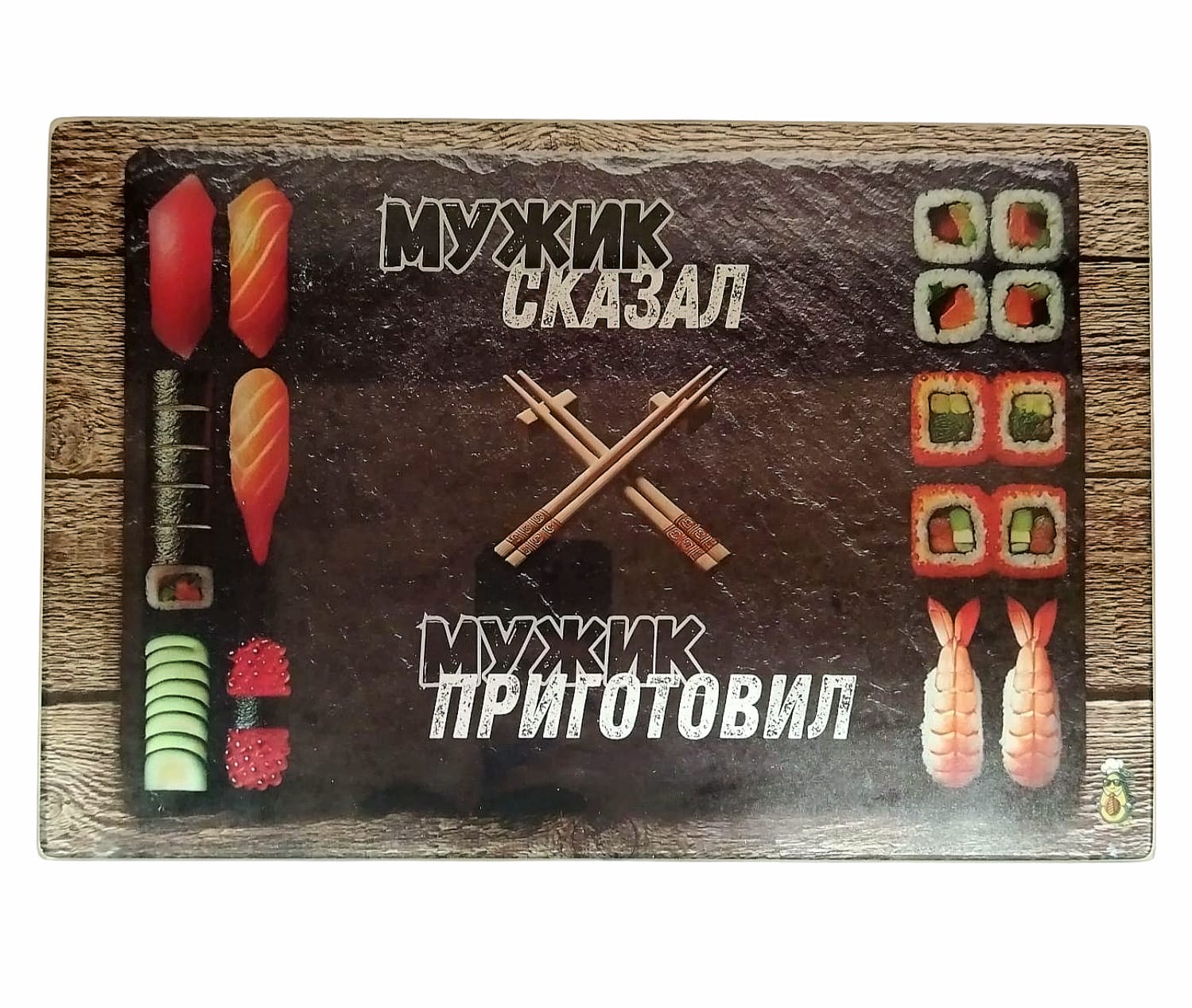 Стеклянная кухонная доска 30x20см Мужик сказал мужик приготовил