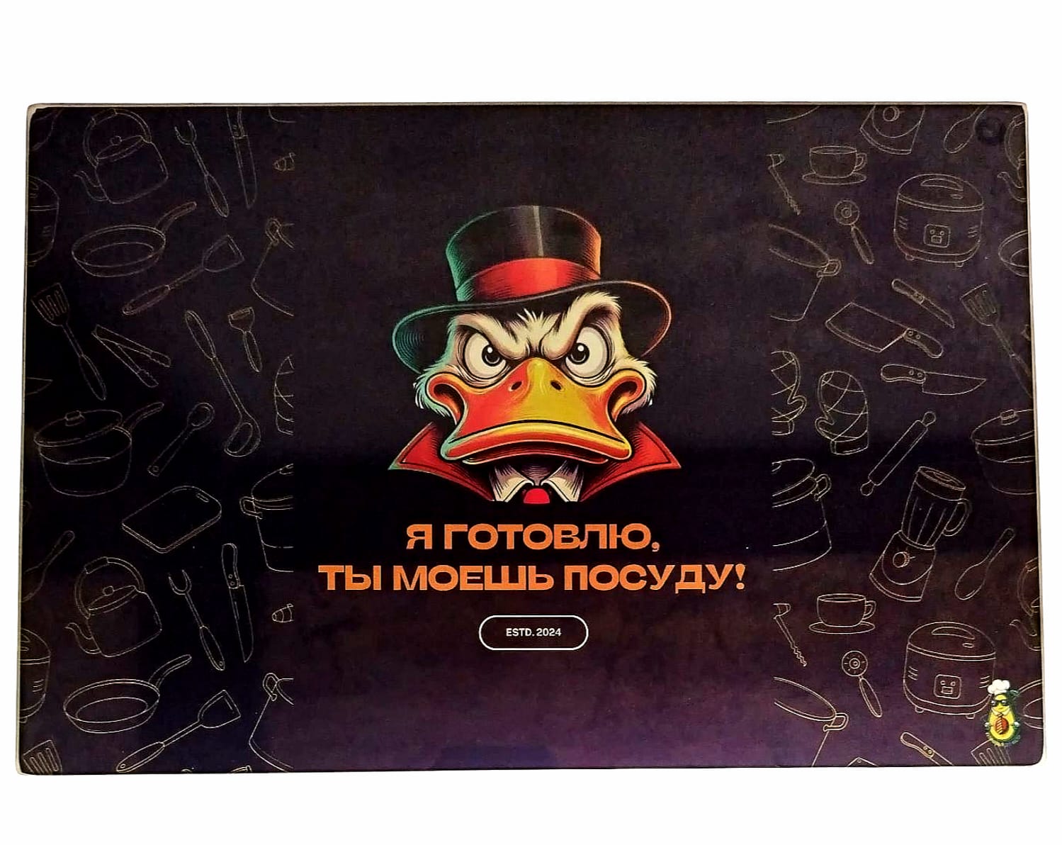 Стеклянная кухонная доска 30x20см Я готовлю ты моеш посуду