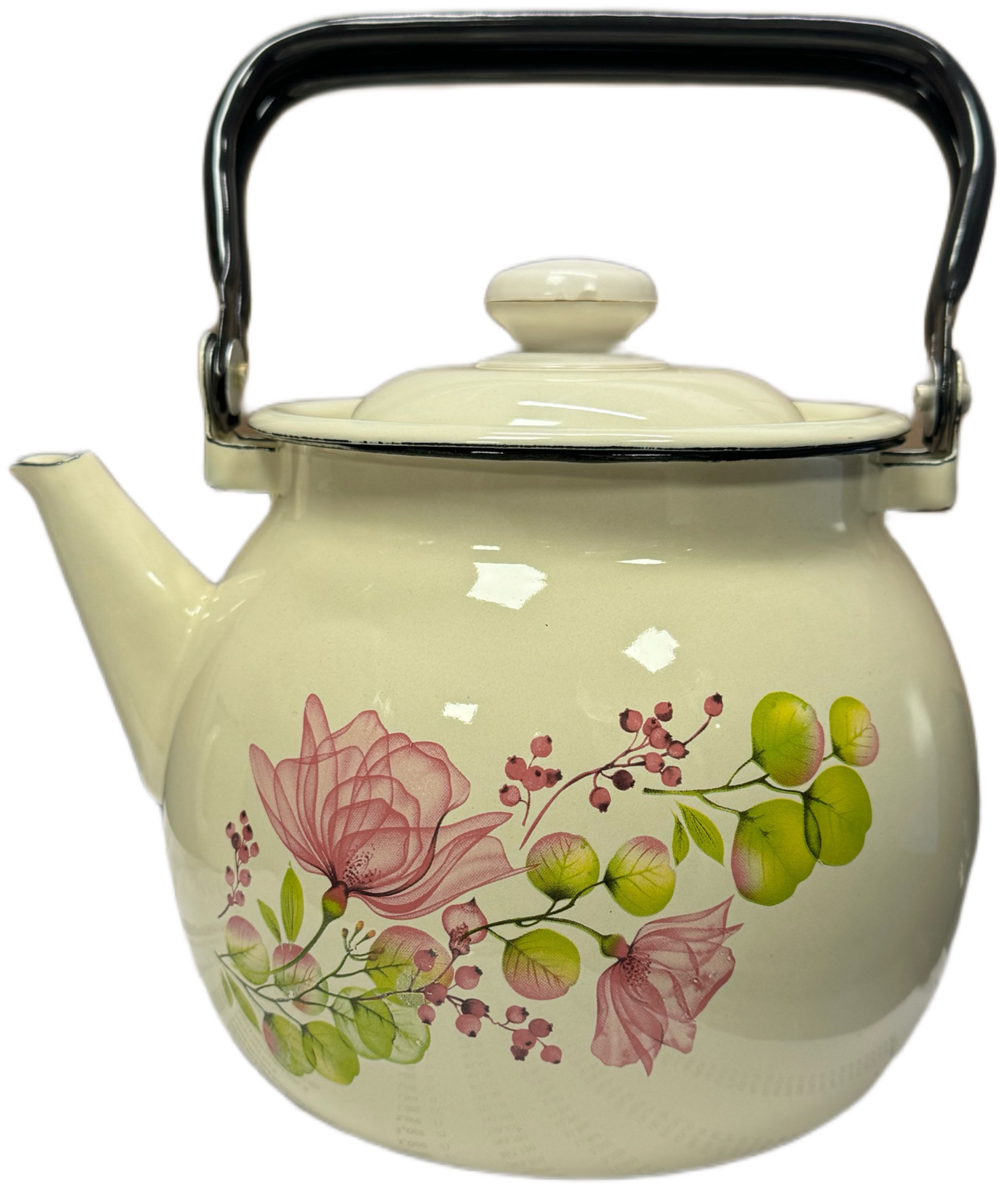 Эмалированный чайник бежевый 3,5Л Цветочная вуаль