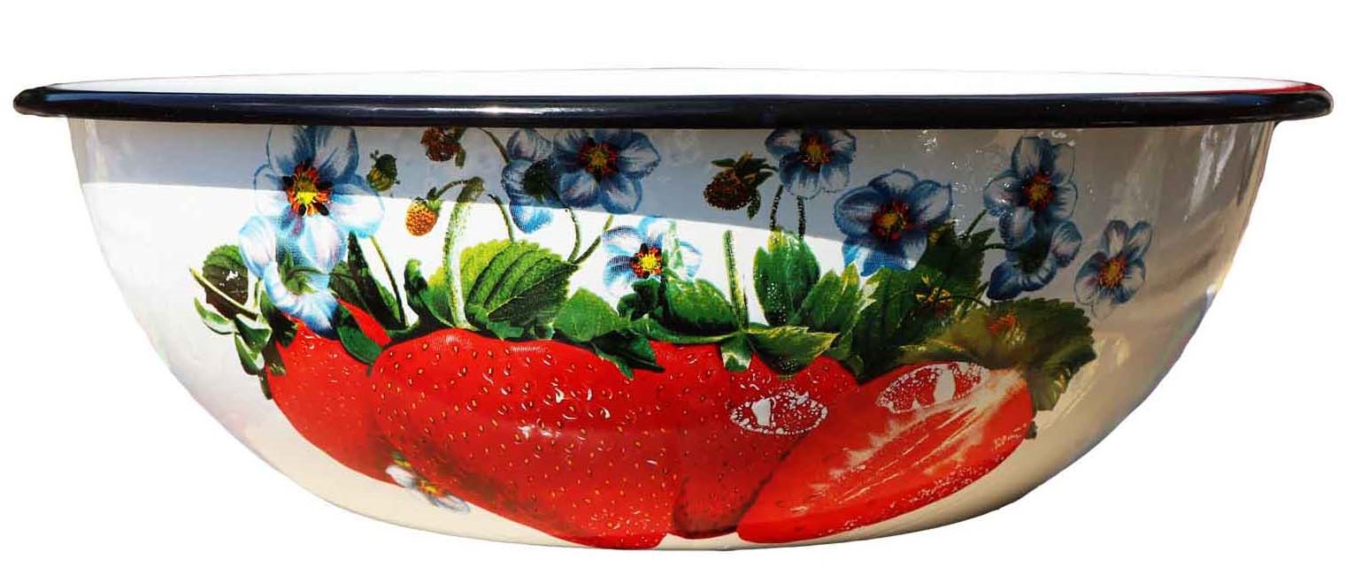 Миска эмалированная белая 4л Клубника