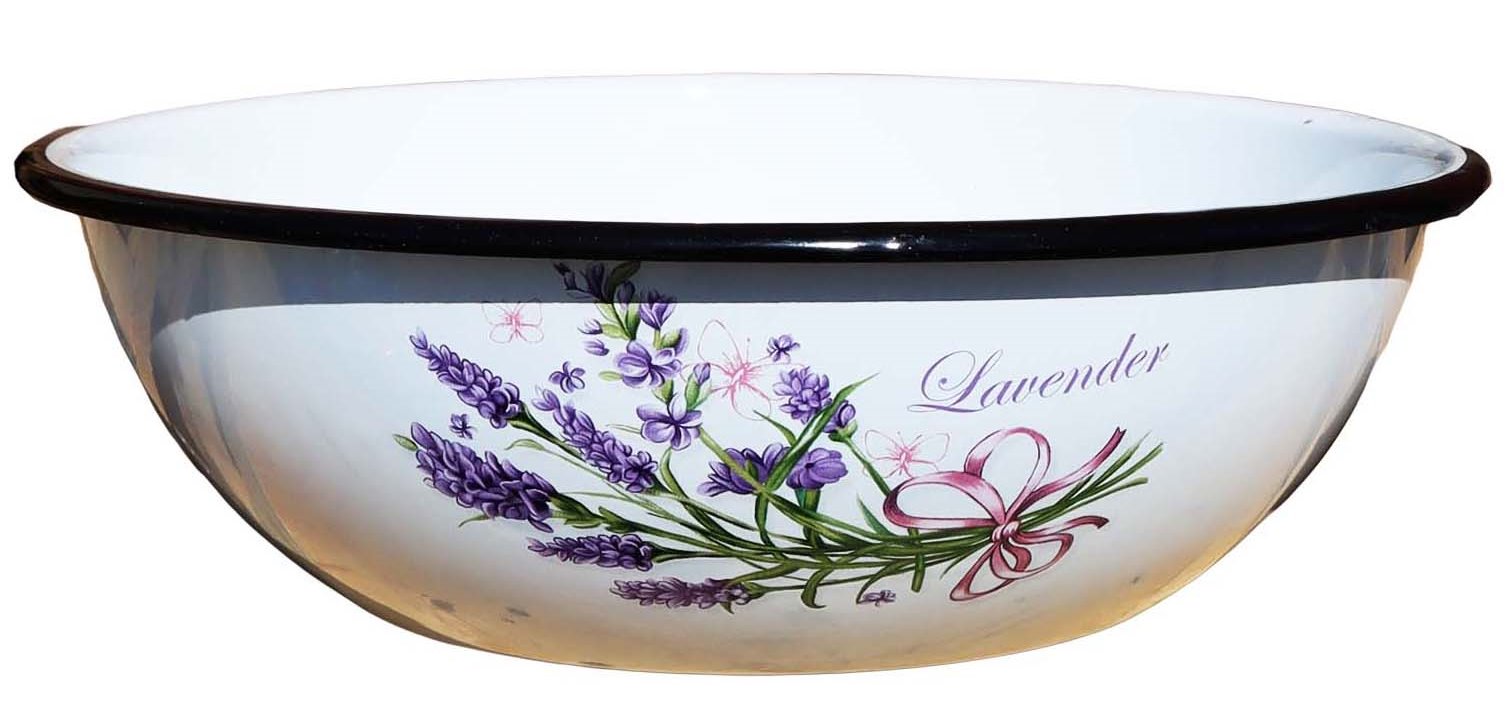Миска эмалированная белая 4л Лаванда