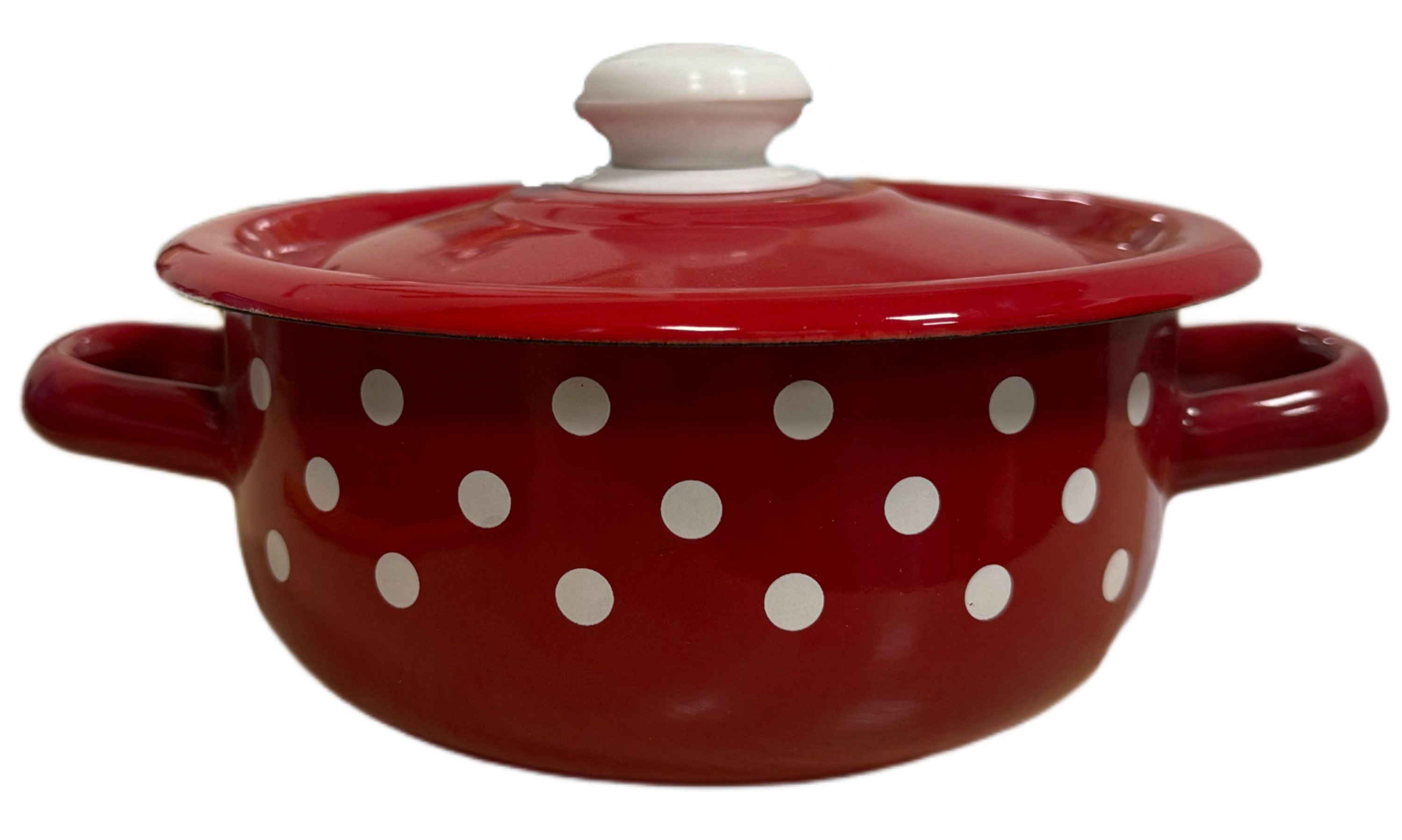 Эмалированная кастрюля 1,5Л Красная полька