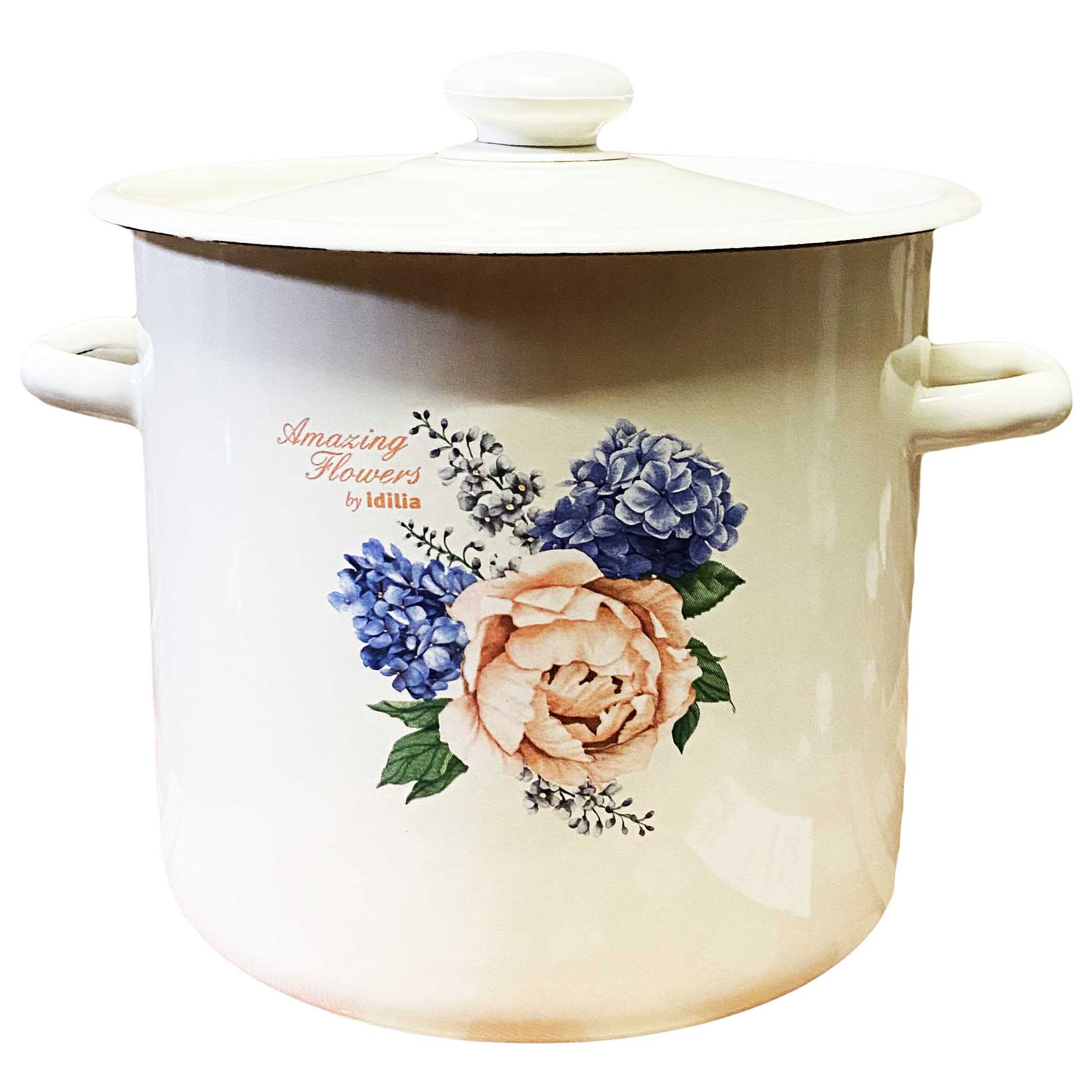 Эмалированная кастрюля 7л Пион и сирень