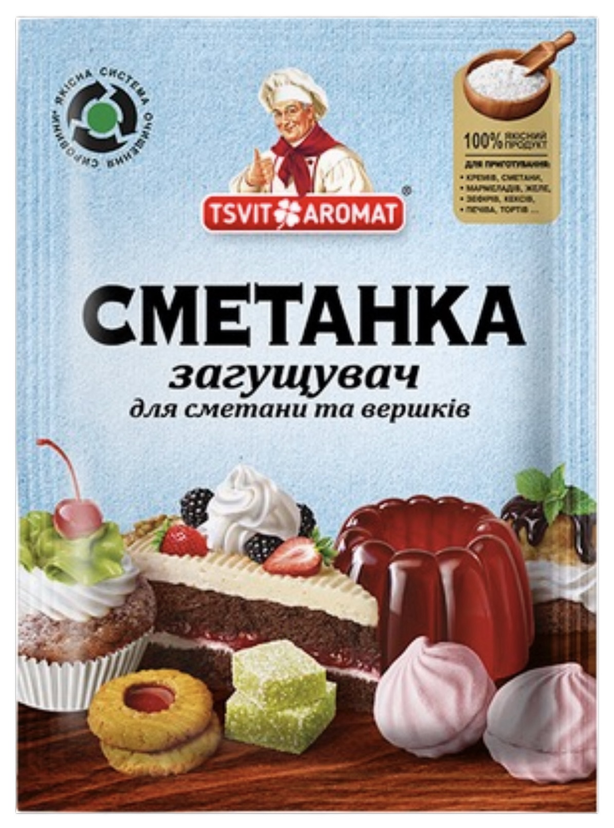 Сметанный порошок - это порошкообразная кондитерская добавка для загущения сметаны и взбивки сливок. Благодаря добавлению этого продукта, сливки взбиваются лучше, крем приобретает пышную консистенцию и объем, который долго сохраняется. Хозяйки отмечают, что десерт или крем, приготовленный с использованием "Сметанного порошка", сохраняет первоначальный объем, красивый внешний вид и отличный вкус. Кроме того, время взбивания значительно сокращается.