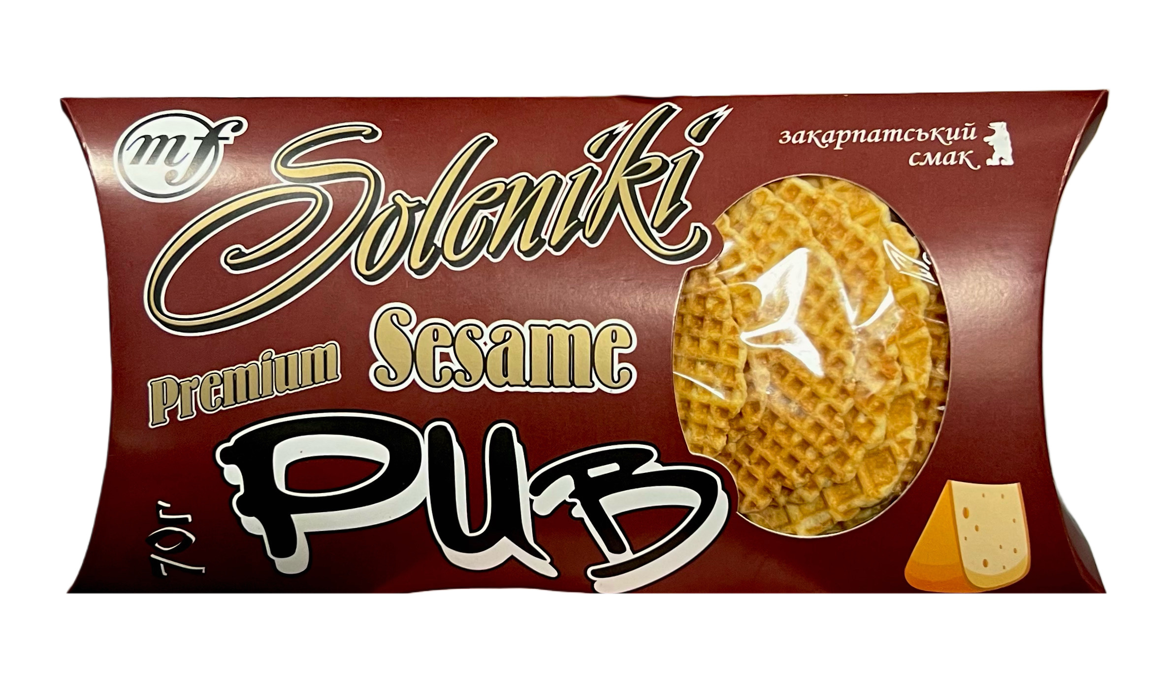 Состав: голандский сыр, мука сметана, яйца куриные, маргарин, соль, сода, уксус, кунжут.