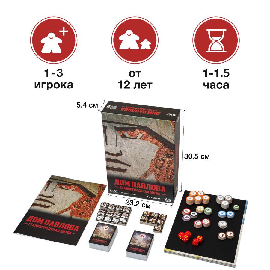 Настольная игра «Дом Павлова. Сталинградская битва» (от 14 лет) – это историческая военная стратегия, основанная на событиях 1942 года, когда Советские войска героически отстаивали свои территории на берегу Волги.