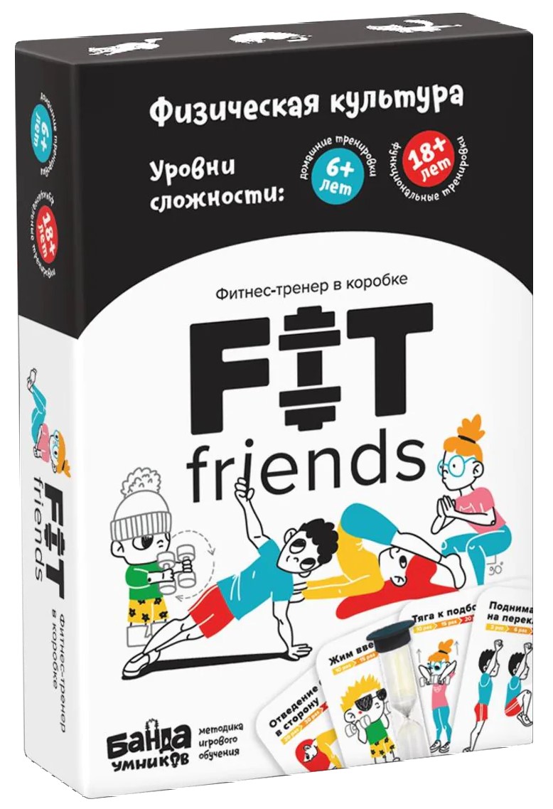«FIT friends» — упражнения на каждый день! В наборе 80 карточек с уникальными упражнениями и наглядными примерами. Этот набор карточек и их комбинаций позволит создать неограниченное количество тренировок разной сложности и для каждой группы мышц. Небольшую коробочку удобно носить с собой, карты можно брать с собой и заниматься где угодно, будь то дома или на свежем воздухе!