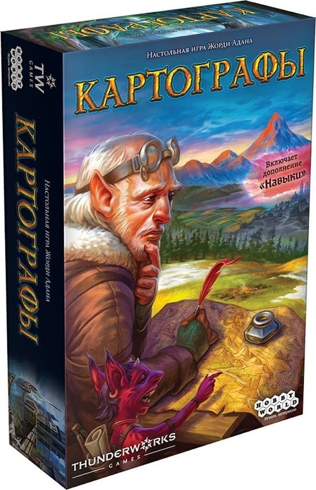 «Картографы» — семейная настольная игра, в которой можно отправиться в приключение в одиночку или большой компанией! Целый год (конечно, лишь символически) игроки путешествуют по королевским землям, тщательно нанося на картографические доски исследуемые окрестности, за свои старания они получают из сокровищницы золотые монеты, а также честные звезды, коллекция которых составляет Главная цель.