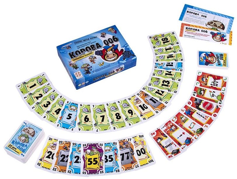 "Корова 006. Юбилейное Издание" – особая настольная игра! Обычно игроки стремятся набрать как можно больше очков к концу игры, но в "Корове 006" всё наоборот. Простая и динамичная настольная карточная игра о шпионских страстях... среди коров! Вам предстоит правильно оценивать риски и просчитывать действия других игроков, попутно вводя в игру всех своих коров-шпионов. Главное – избежать встречи с коровой 006, она невезучая!