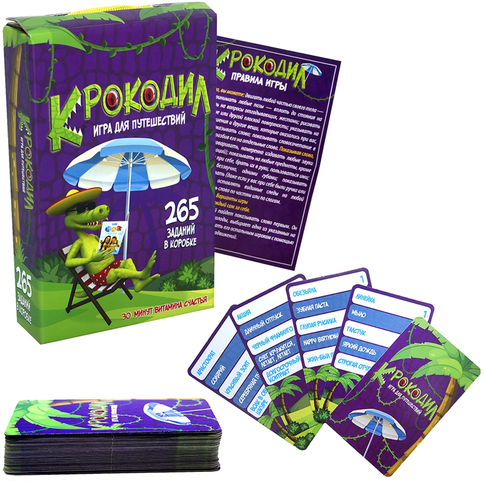Проявить свои артистические таланты, сообразительность и просто развлечься в компании до 6 человек поможет знаменитая игра «Крокодил». Сможет заинтересовать не только детей, но и взрослых, даст возможность увлекательно провести время всей семье, при этом развить внимательность. В игре необходимо угадать слово, предмет или действие выбранное ведущим на одной из карточек, всего предусмотрено 265 заданий. Ведущий должен мимикой, движениями, жестами описать, то что обозначено в карточке – и никаких слов или подсказок! А остальные игроки должны угадать предмет, изображенный ведущим. Веселый смех в этом представлении гарантирован!