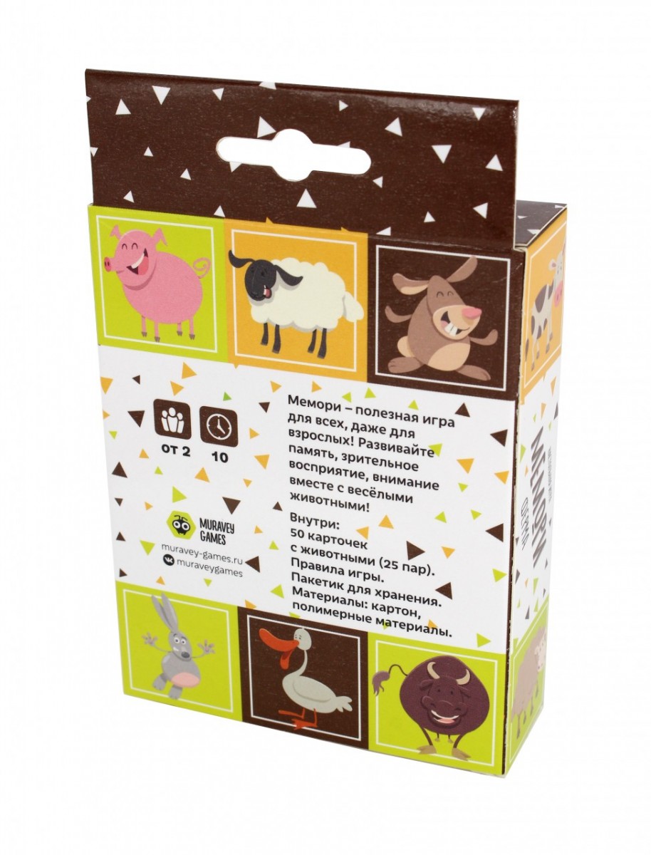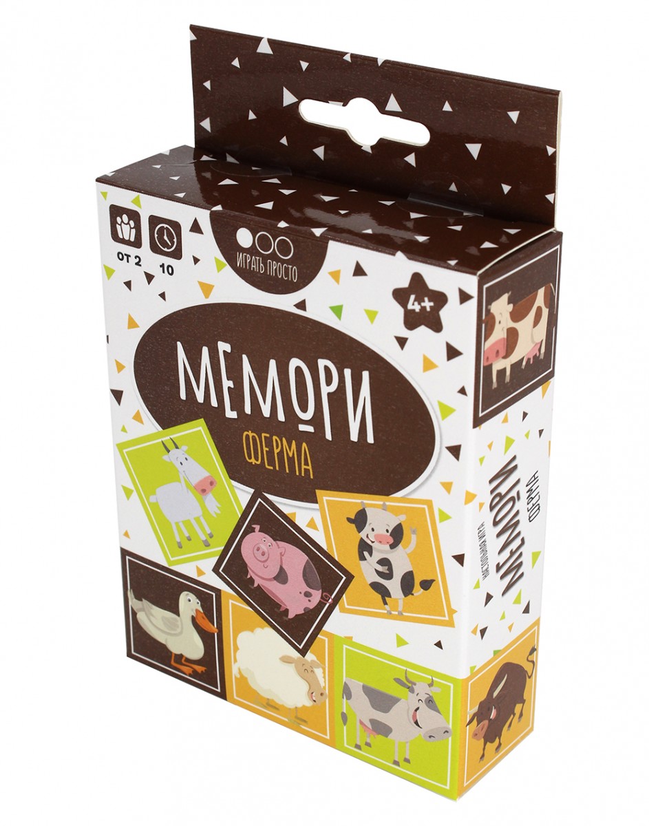 Настольная игра "Мемори. Ферма" (от 4 лет) – это полезная игра для всей семьи, развивающая зрительную память, внимательность и восприятие. Является классической игрой-обучением с интуитивно понятными правилами. От других подобных игр она отличается великолепным оформлением. Здесь каждая зверюшка имеет свой характер.