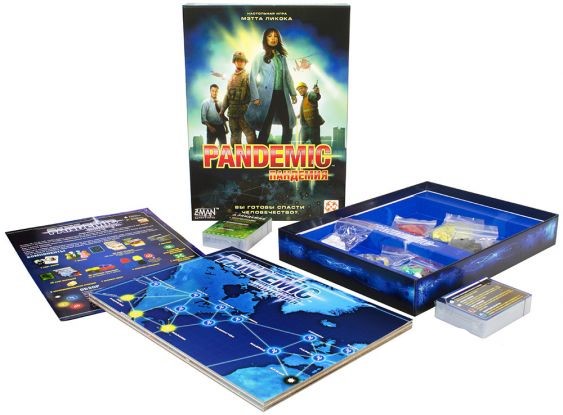 В настольной игре "Пандемия" страшные события обрушились на нашу планету. Одновременно по всему миру вспыхнуло несколько вирулентных заболеваний. Игрокам отводятся роли специалистов по борьбе с заболеваниями и поручают важную миссию – остановить распространение болезней. Вам предстоит посетить очаги заболеваний и изобрести вакцину от каждой из четырёх болезней, прежде чем они выйдут из-под контроля и распространятся по всему миру.