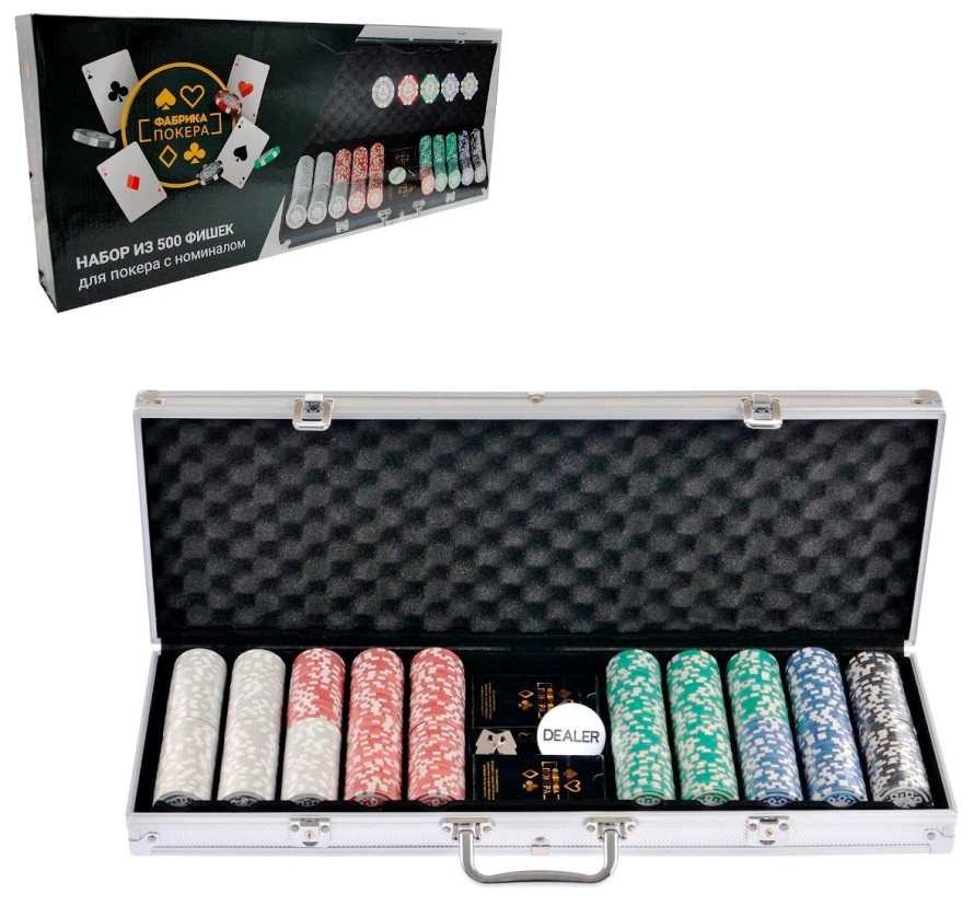Набор из 500 покерных фишек номинальной стоимостью для полноценной игры в покер! Делайте стильные ставки, а специальный серебряный футляр поможет вам хранить фишки и брать их с собой. Это расширенный набор для настоящих ценителей этой карточной игры.