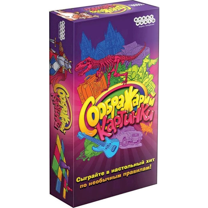 Настольная игра "Соображарий. Картинки" (от 8 лет) – увлекательная игра для семейных посиделок и весёлых вечеринок. Каждый ход Вы будете тянуть две карты: задание и картинку. Ваша цель – придумать слово, подходящее к заданию и начинающееся на ту же букву, что и изображение на карте. Вопросы придуманы так, что понятны и ребёнку – победа здесь достаётся не самым начитанным, а самым быстрым и сообразительным!