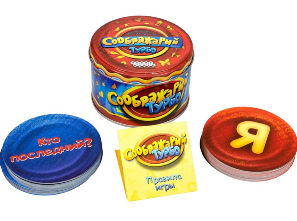 Настольная игра "Соображарий. Турбо" (от 7 лет) – популярная игра на скорость мышления и богатство лексикона для шумной компании 2-6 веселых и находчивых эрудитов. В новом Турбо-формате игра еще более компактна и удобна для транспортировки. Устраивайте словесные турниры при любом удобном случае: дома, в гостях, на природе или в дороге. Настольная игра «Соображарий» заставит вас задуматься! Она прекрасно подойдёт для шумных вечеринок или тихих семейных вечеров. Развивайте свой кругозор, вспоминайте самые неординарные слова и победа будет в вашем кармане.