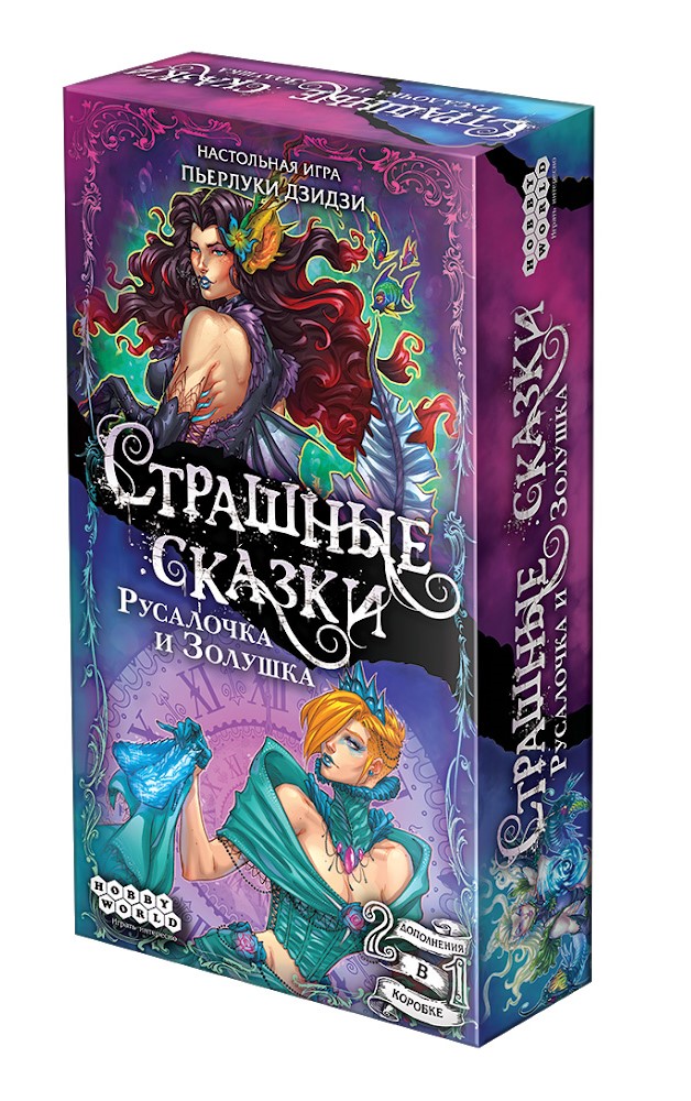 Настольная игра "Страшные сказки. Русалочка и Золушка" (от 13 лет) — это набор из двух полноценных дополнений для базовой игры. Добавив эти карты к основному набору, Вы сможете сильно расширить свои игровые возможности и вариативность сказочных повествований. Таким образом, Вы увеличите длительность игры, но, при желании, Вы сможете уменьшить общее количество карт, чтобы не затягивать партии. Набор предлагает множество новых карт персонажей, сюжетных карт, карт предметов, а также появляются новые механики с отдельными колодами. Дополнение "Русалочка и Золушка" добавляет к основной версии игры новых привлекательных героинь. Русалочка, конечно, мечтает получить вместо рыбьего хвоста человеческие ноги и завоевать сердце прекрасного принца. Для этого нужно заключить сделку с морской ведьмой, но пройдёт ли всё гладко, не знает никто. Золушка же грезит о бале в королевском дворце и последующей встрече с принцем, но тут нельзя забывать о вредных сёстрах и злой мачехе.