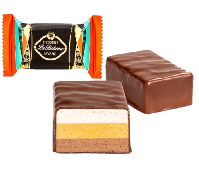 LA BOHEME - воплощение богемного шика. Яркий трехслойный десерт, в котором мы воплотили кондитерское представление о богемном шике, гармоничном и притягательном сочетании разных вкусов и легких послевкусий. MUALE - в переводе с французского "муале" означает нежный и бархатистый. Именно так можно описать текстуру нашего нового десерта. Шоколад, манго, сливки - вкусовые слои муале. Вместе они представляют яркую и гармоничную игру вкусов.