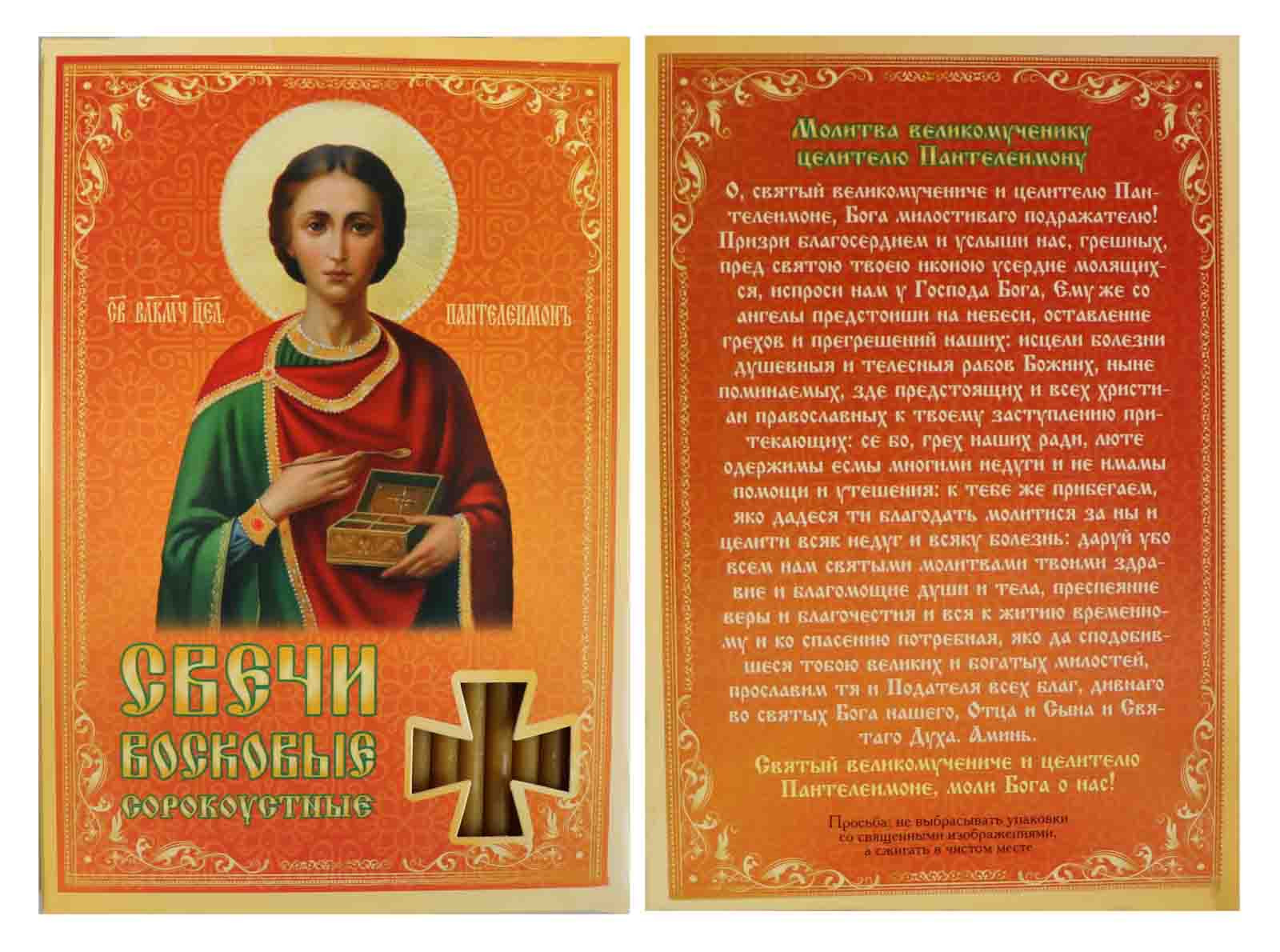 • предварительный просмотр Свечи сорокоустные Пантелеймон 19см 40шт