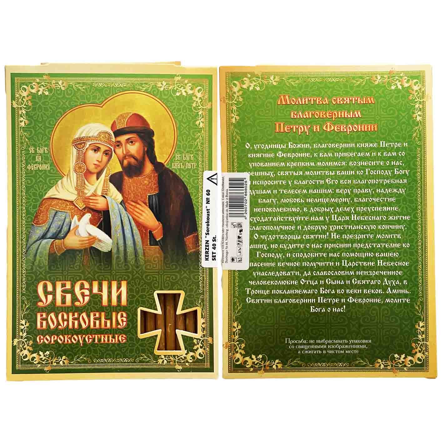 Свечи сорокоустные Петр и Феврония 19см 40шт