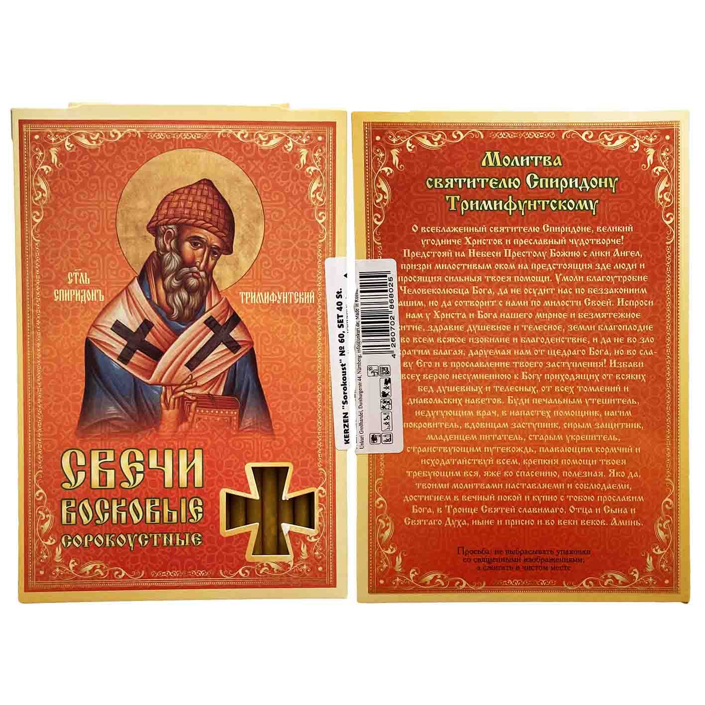Свечи сорокоустные Спиридон 19см 40шт