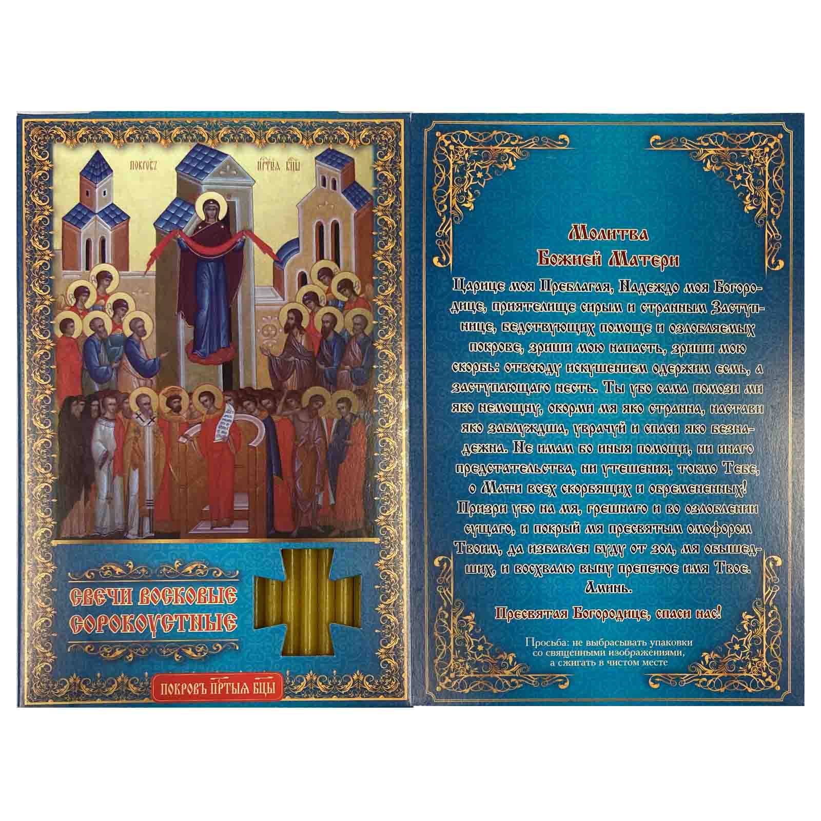• предварительный просмотр Свечи сорокоустные Покрова Пресвятой Богородицы 16см 40шт