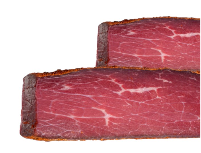 Состав: говядина, поваренная соль, декстроза, сахар, лактоза, сухой сироп глюкозы, мальтодекстрин, антиоксидант: аскорбат натрия, усилитель вкуса и аромата: глутамат натрия, экстракт дрожжей, экстракты специй, консервант: нитрит натрия, созревающие культуры, дым.