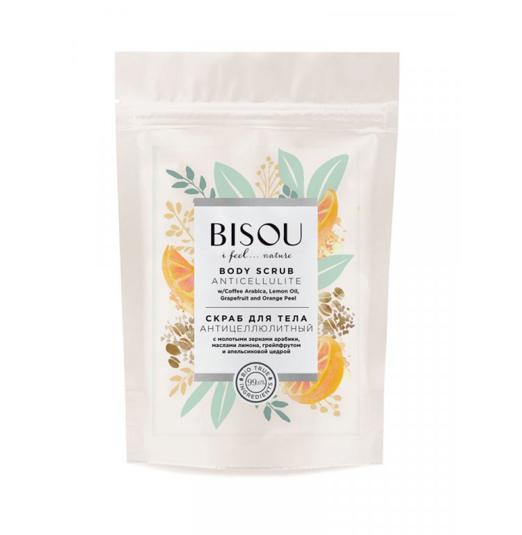 Состав: Натрий хлорид (морская соль), сахароза (сахар), порошок из зерен Coffea Arabica (кофе), глицерин (растительный), масло Glycine Soja (соевое), триглицерид каприловой / каприновой кислоты, масло Cocos Nucifera (кокосовое), масло цедры Citrus Limon, масло цедры Citrus Aurantium Dulcis (апельсин), порошок цедры Citrus Aurantium Dulcis, экстракт плодов Citrus Paradisi (грейпфрут), ацетат токоферола (витамин Е), пантенол (D-пантенол), токоферол, вода, бета-ситостерол, сквален, бензиловый спирт, бензойная кислота, дегидроуксусная кислота, парфюмерная композиция, сорбат калия, бензоат натрия, лимонен.