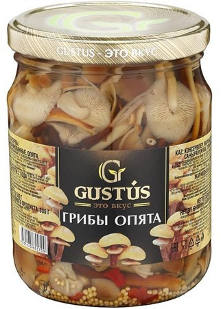 Состав: опята, вода питьевая, сахар, соль, регулятор кислотности уксусная кислота, лук, чеснок, пряности, в т.ч. семена горчицы.