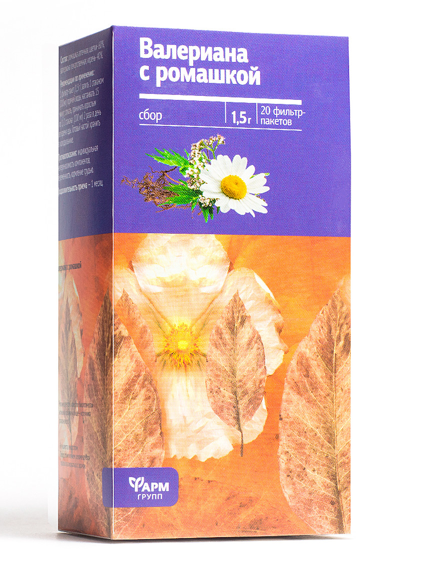 Состав: ромашка аптечная (цветки), валериана лекарственная (корень).