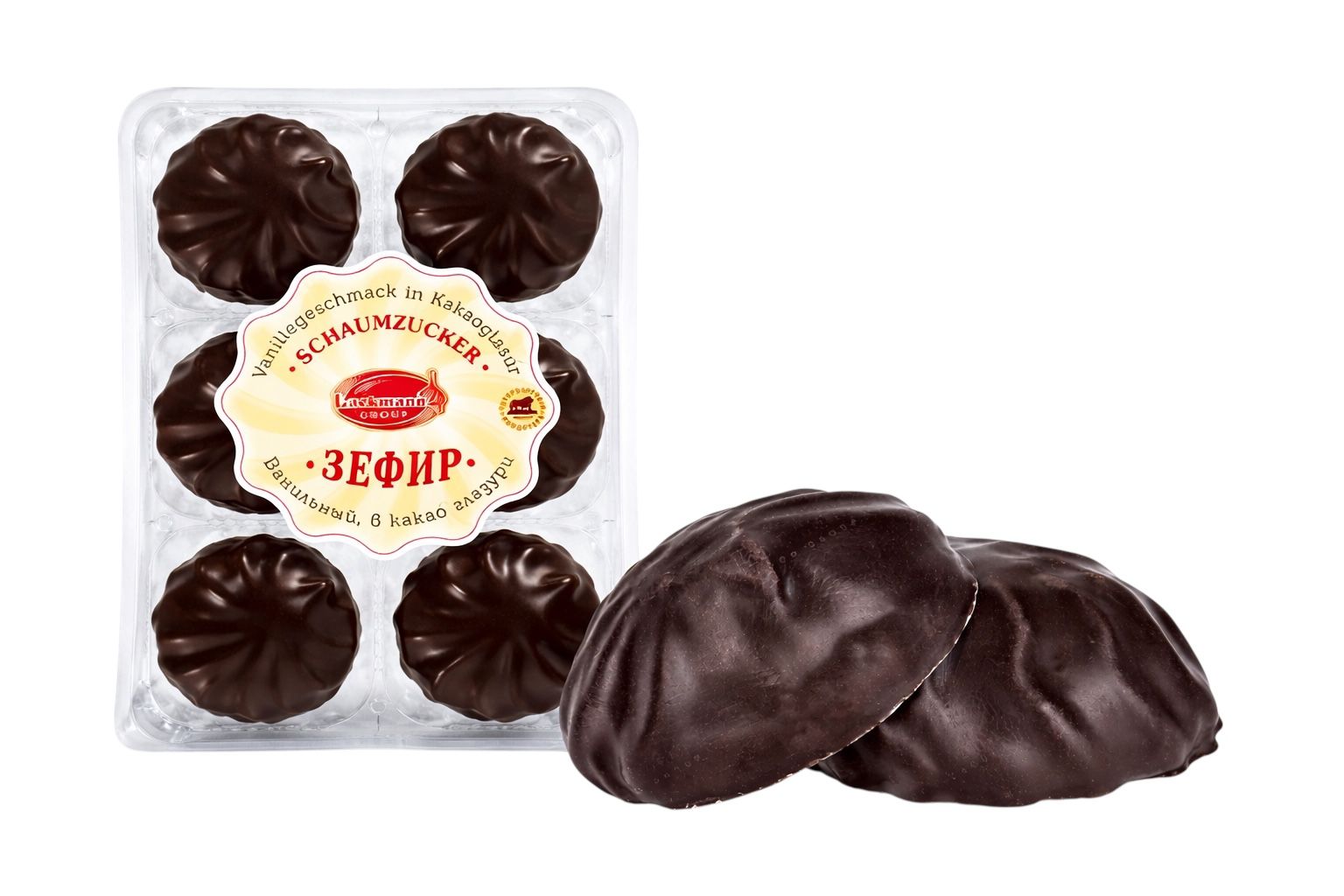 Это нежный воздушный зефир с классическим ванильным вкусом, покрытый тонким слоем сладкой шоколадной глазури.