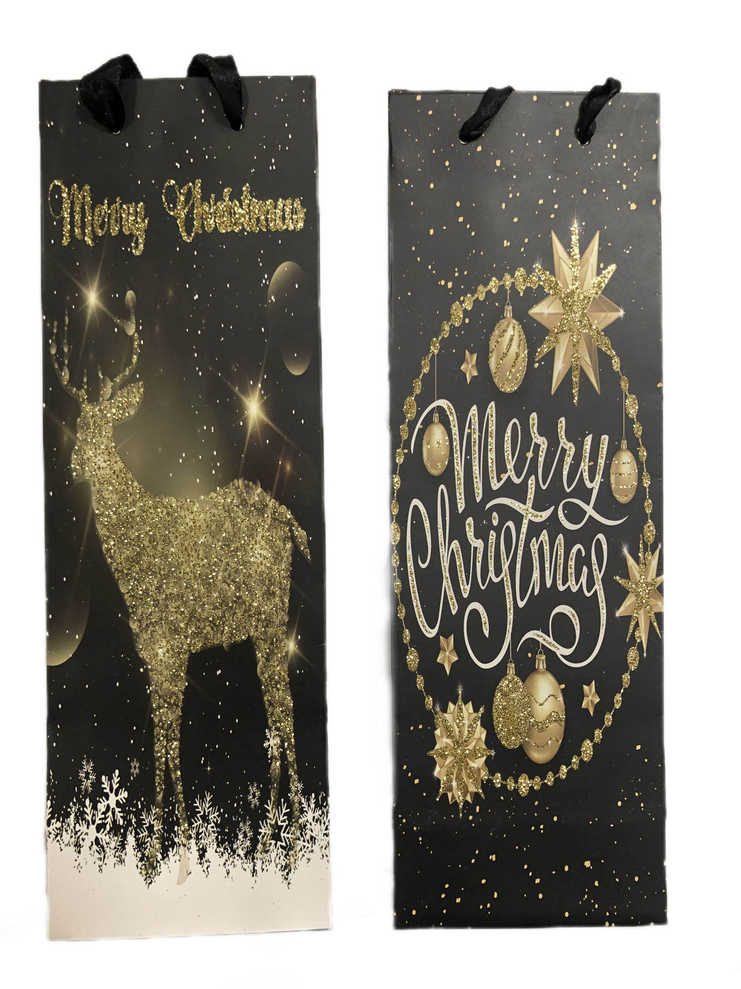 Vánoční taška na víno 12cm*35cm černo-zlatá