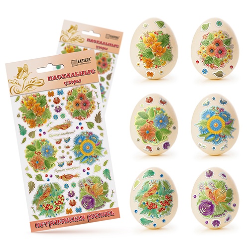 Пасхальные наклейки с узорами на яйца Петриковская роспись