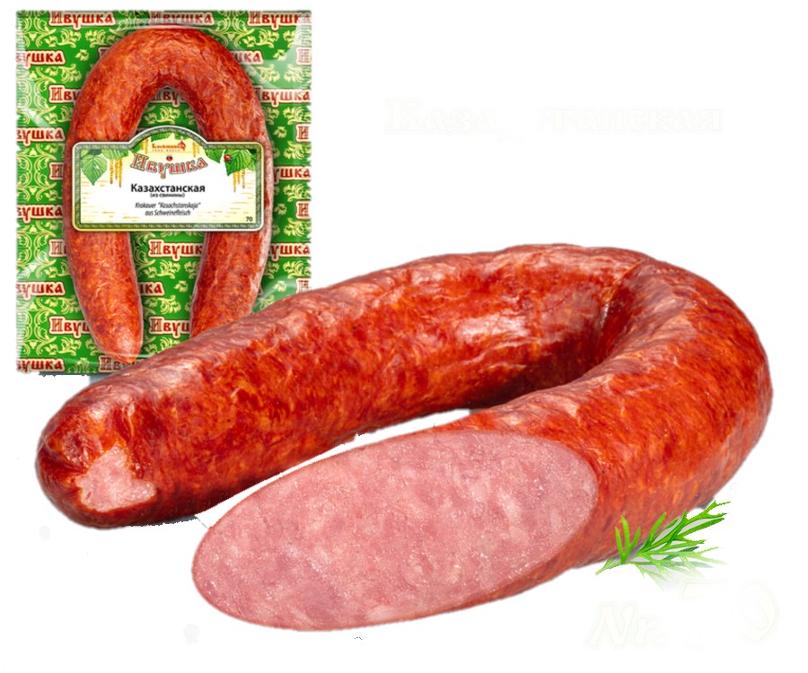 Казахстанская колбаса - это традиционный мясной продукт, который изготавливается в соответствии с казахстанскими кулинарными традициями. Она изготавливается из высококачественного мяса, обычно говядины или баранины, которое смешивается с приправами и специями для придания характерного вкуса. Этот продукт часто имеет плотную текстуру и интенсивный мясной вкус, который подчеркивается ароматом специй. Казахстанская колбаса может быть вареной, копченой или сушеной, что придает ей разнообразие во вкусовых характеристиках. Её часто подают в качестве холодного закусочного блюда, добавляют в супы, основные блюда или употребляют самостоятельно. Казахстанская колбаса является популярным продуктом на столе во время праздников, семейных сборов или просто в повседневной кухне.