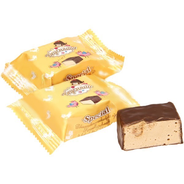 Состав: сахар, жировая оболочка, содержащая 30% какао (сахар, полностью затвердевшее пальмовое масло, продукты молочной сыворотки, сухое молоко, какао-порошок, эмульгатор соевый лецитин, ароматизатор, соль), глюкозный сироп, растительные жиры (пальмовое масло, пальмовый олеин, кокосовое масло , масло подсолнечное, эмульгатор Е471, Е322, ароматизатор, красители (Е160а, Е150с), антиоксиданты (Е320, Е304, Е306), Е321), яичный белок, сахар, сгущенный молочный продукт (молоко цельное, сахар, лактоза), обезжиренный какао-порошок, желирующий агент агар-агар, регулятор кислотности Е270, ароматизатор.