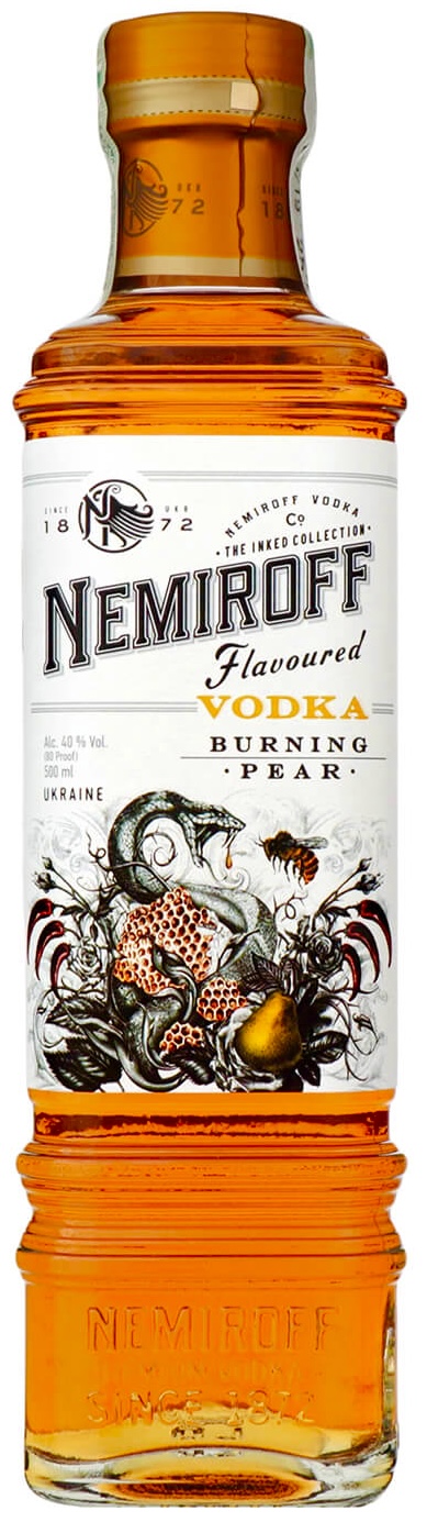 Водка Nemiroff Burning Pear – продукт премиум-класса с совершенно новым вкусовым ощущением. Это сочетание собственной оригинальной сверхчистой водки по старинному рецепту 16 века и грушевого концентрата. Этот напиток имеет бархатистый, гладкий вкус, который открывается сладкими медово-грушевыми нотками и сопровождается горьковатым послевкусием. Рекомендуем подавать охлажденным или в составе коктейлей на водочной основе.