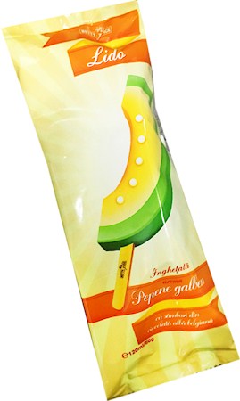 Složení: rekonstituované odstředěné mléko, cukr, rekonstituované plnotučné mléko, rostlinný tuk (kokos), emulgátor (mono a diglyceridy mastných kyselin), stabilizátory (guarmová guma, kobylková guma, karragenan). 1,6% belgická bílá čokoláda (kakaové máslo, cukr, sušené plnotučné mléko, živočišný tuk z mléka, emulgátor: sojový lecitin, přírodní vanilková příchuť), přírodní barvivo (paprikový extrakt, kurkumin, chlorofylin), melounová příchuť.