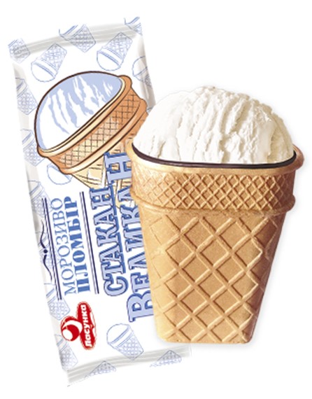Пломбир, приготовленный на домашнем молоке и сливочном масле. Хрустящий вафельный стаканчик и сливочный вкус начинки – идеальное сочетание.